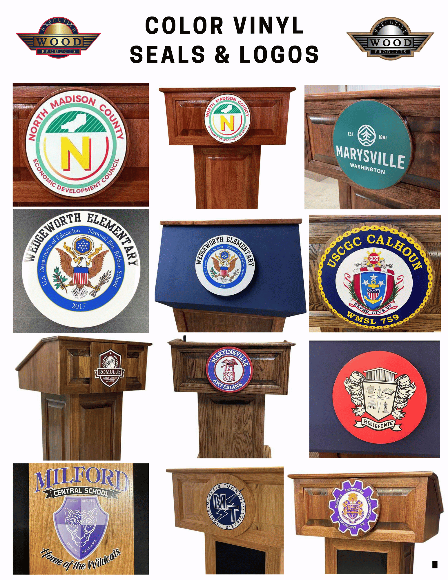 Personalize your lectern, podium, or workstation with a custom logo, seal, or emblem to create a professional and distinguished appearance. Choose from three high-quality customization options to best suit your needs.