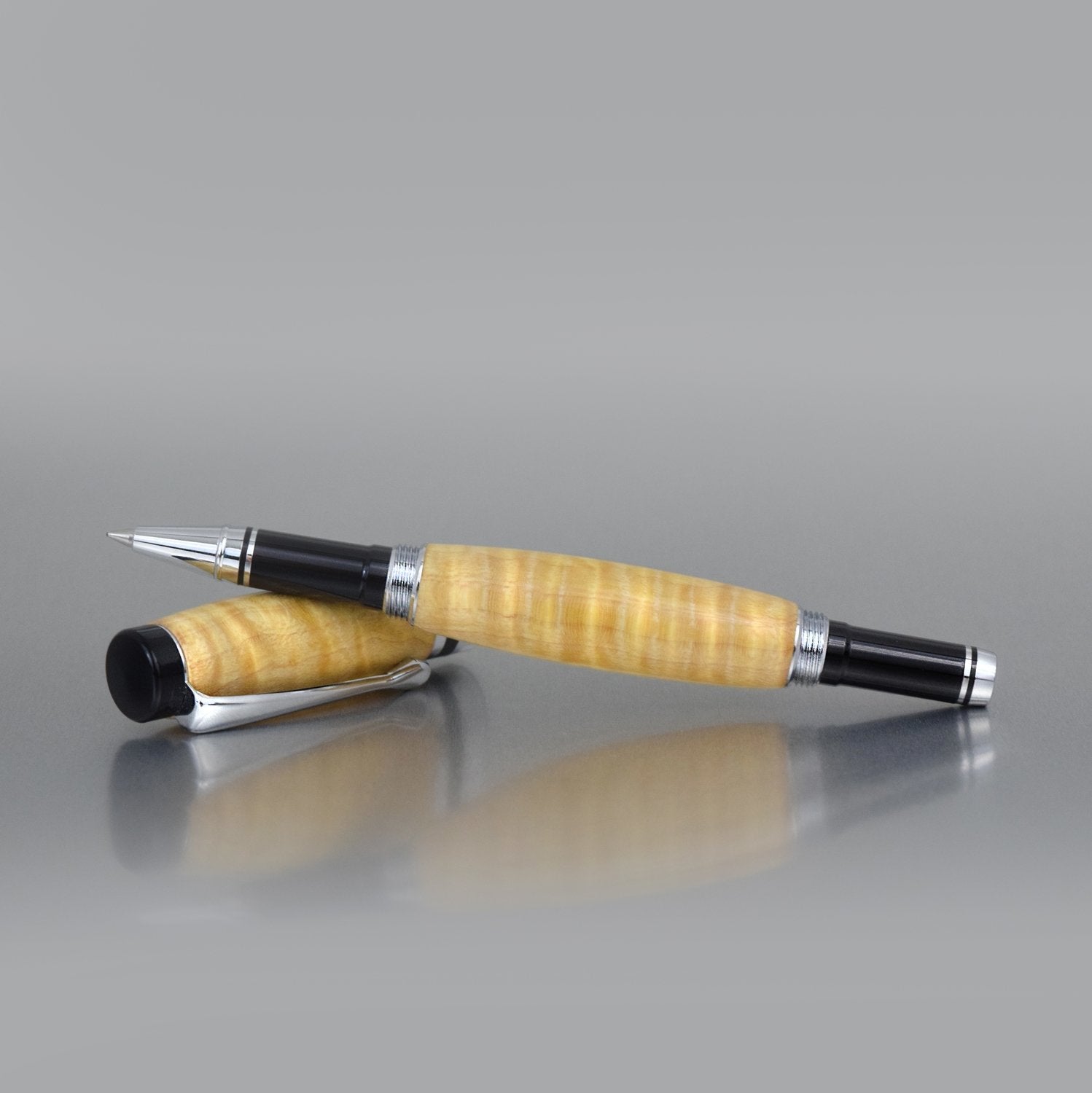 This Executive Rollerball Pen has been handcrafted from Curly Maple wood and paired with a sleek metal body for a clean, minimalist feel. Part of our Distinguished Pen Series, it embodies the pride of small-town craftsmanship.