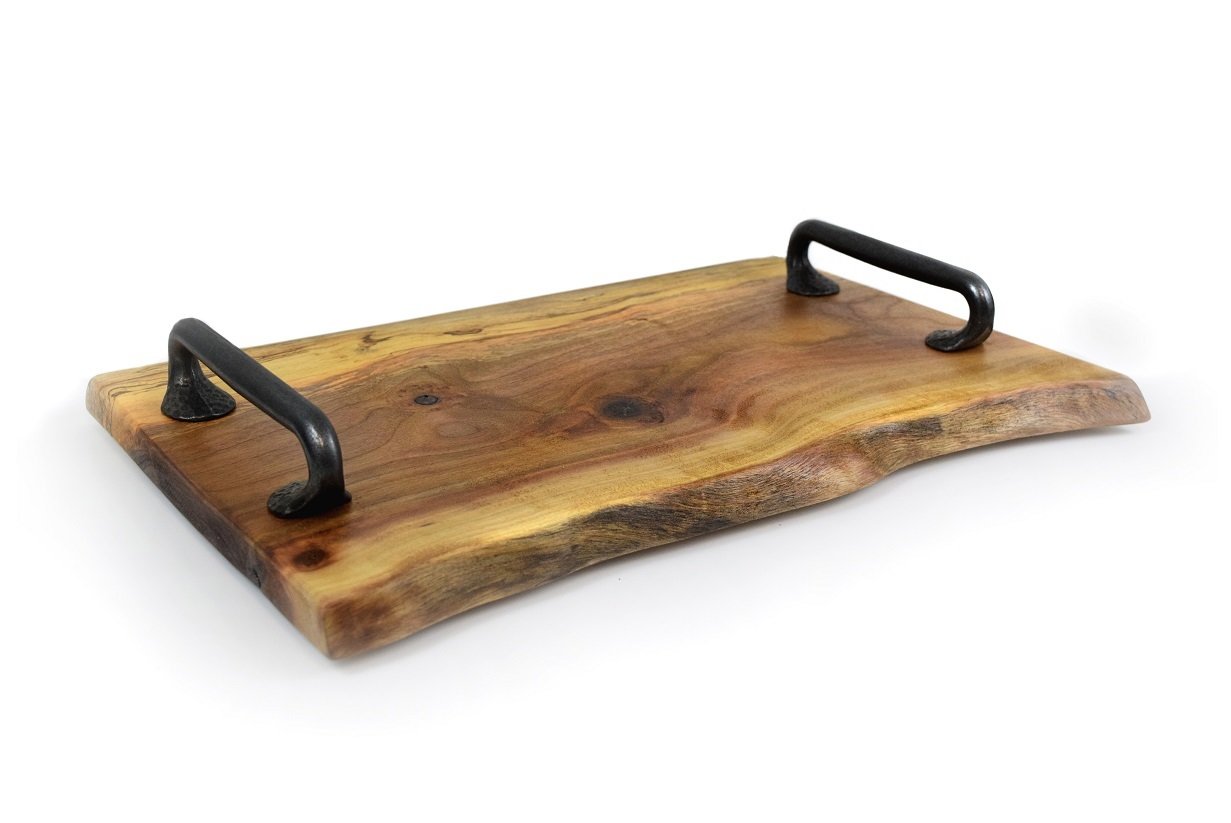 Whether you're entertaining guests or looking for the perfect gift, this handmade live edge serving tray is a beautiful addition to any kitchen or dining space. Each board is masterfully crafted from solid walnut and features a raw, natural edge that showcases the unique grain and character of the tree it came from, making every piece one of a kind.