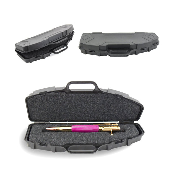 Built for bold expression, this handcrafted bolt action pen is turned from striking pink laminate wood and features a working bolt action click mechanism, rifle clip, and realistic .30-06 caliber bullet tip. It’s a conversation piece that writes smoothly and feels solid in the hand.