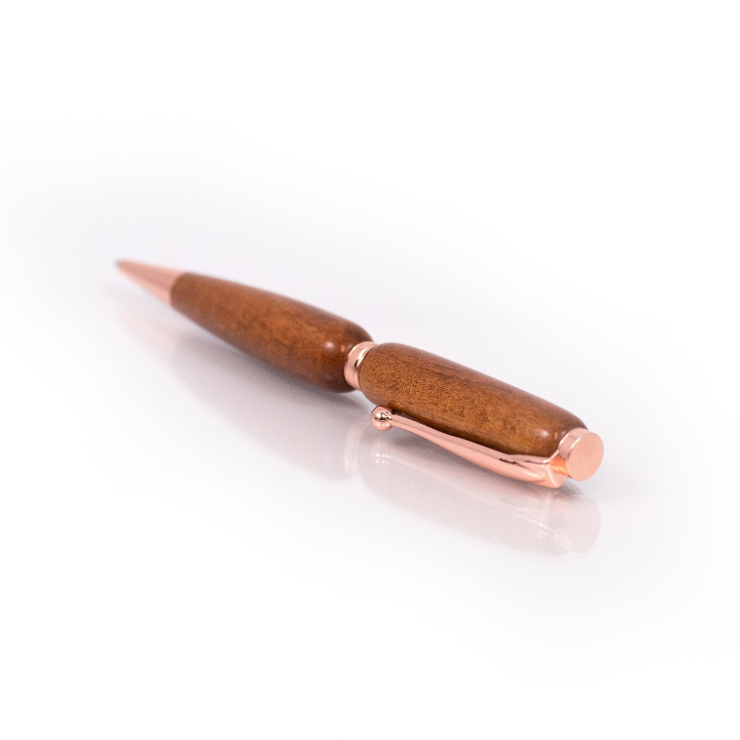 Elegant and understated, this Sapele pen is handcrafted to highlight the wood’s deep, reddish-brown color and subtle shimmer. Often compared to mahogany, Sapele offers a refined grain pattern with a smooth texture that feels comfortable in the hand. Each pen is individually turned in Missouri, then sealed with a high-gloss finish to bring out the natural beauty and ensure lasting durability.