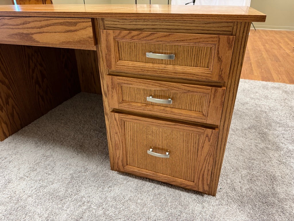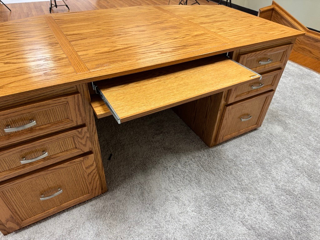 With six spacious dovetail drawers, you’ll have plenty of room for files and supplies, and the smooth-gliding keyboard pullout keeps your workspace clean and comfortable. Whether you’re outfitting an executive office, a front desk, or a home workspace, the St. James is a desk you’ll be proud to work behind for years to come.