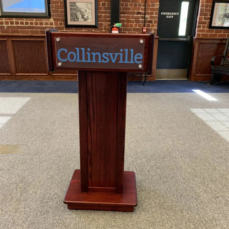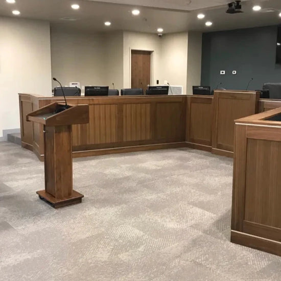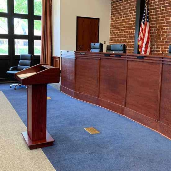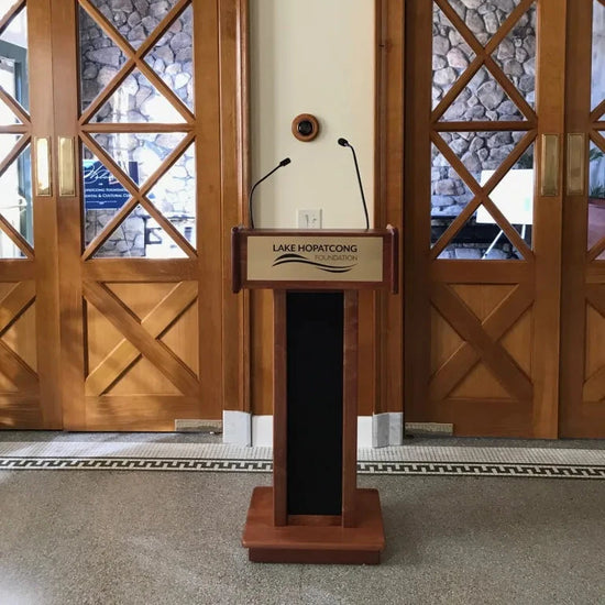 Please Note: Due to the many customization options we offer, most of our lecterns are made to order. Lead times depend on the options chosen (custom logo, sound system, electronic lift etc.) but typically range between 2-4 weeks.