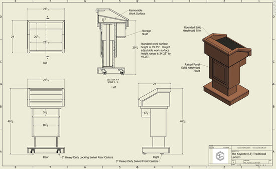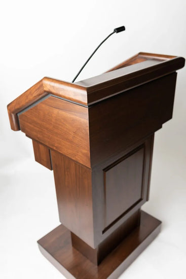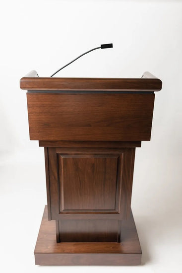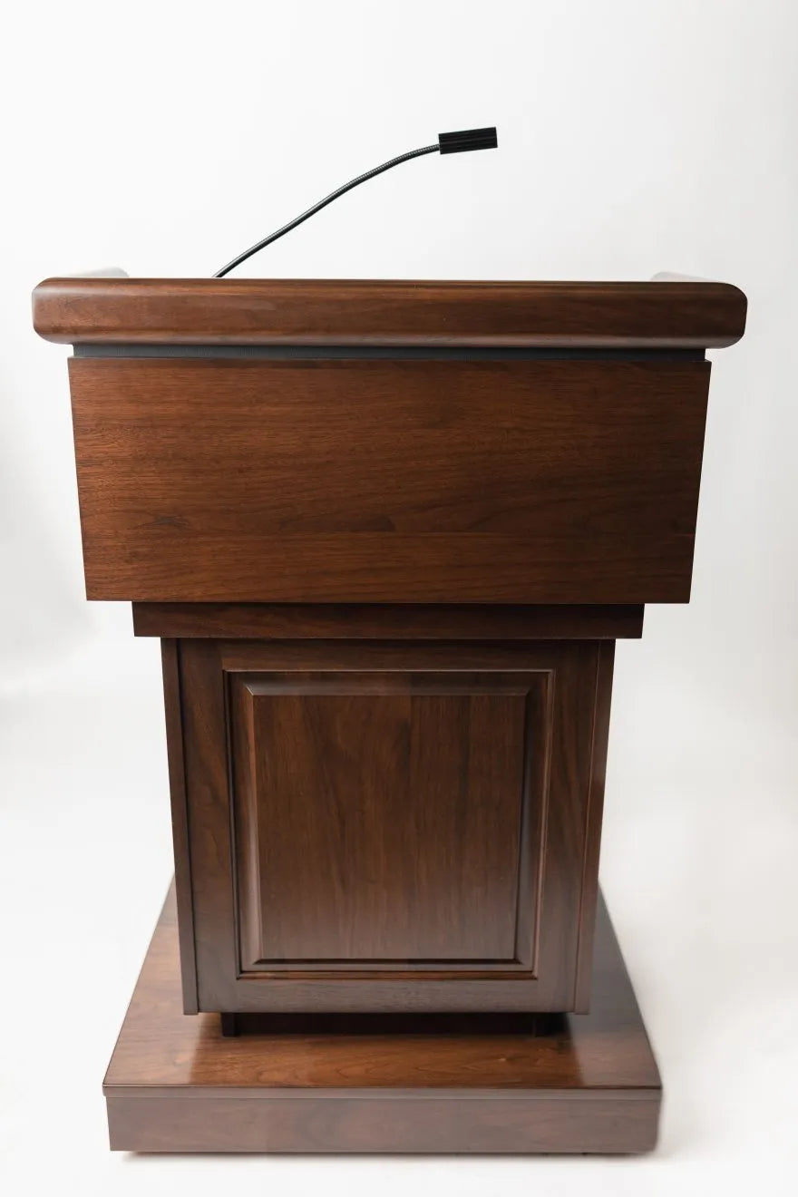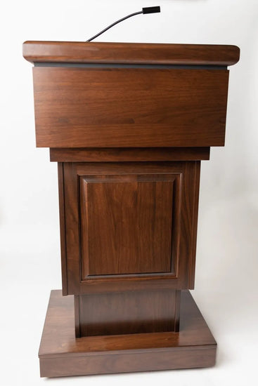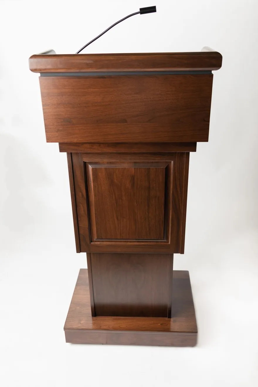 Please Note: Due to the many customization options we offer, most of our lecterns are made to order. Lead times depend on the options chosen (custom logo, sound system, electronic lift etc.) but typically range between 6-8 weeks.